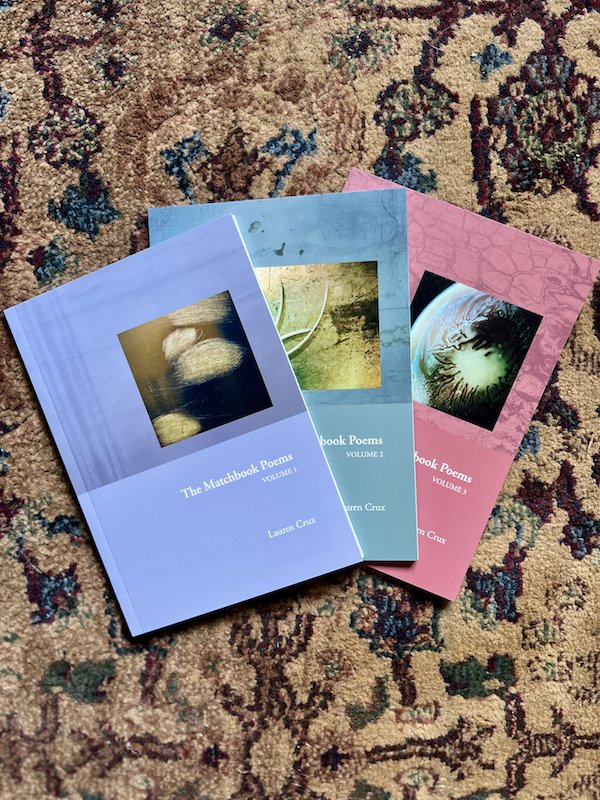 The Matchbook Poems is a set of three small chapbooks—each pairing short pieces of poetic writing with my color photographs. They are a collection of thoughts, reflections and reveries, “lovely offhand things,” about moving through time as woman. I hope you laugh out loud and think deeply.